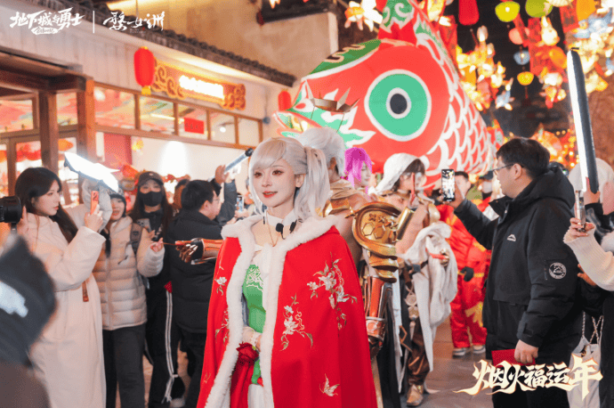 连理堂摇身一变,成为线下版“赛丽亚旅馆”,将DNF这一标志性游戏场景从虚拟世界“搬”至现实。通过精心的虚实结合复刻与年节氛围营造,线上线下共同编织出浓厚的仪式感。在遍布景区的互动小摊旁,由游戏内经典角色coser化身的“新春祈福官”,与游客一同玩起趣味游戏、开起新年拍卖会,并即兴演绎剧情、热情合影互动、发布实时任务……琳琅满目的项目令人目不暇接,真正实现了“好看、好吃、好玩”的沉浸式狂欢。人们在一片热闹狂欢中写下心愿,燃放祈福天灯,在传统年俗与数字IP的交融里,共贺新一年的到来。