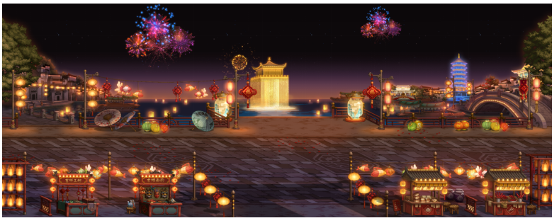 活动当天,婺女洲景区人头攒动,年味十足。平日烟波画境的徽派小镇,一改“江南”水韵的内敛,幻化成节庆氛围下的“阿拉德大街”。